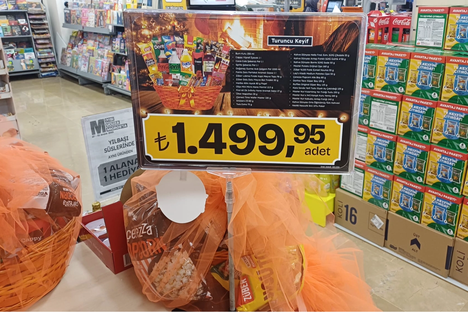 YILBAŞI SEPETLERİ VİTRİN ÜRÜNÜ OLDUEkonomik koşulların etkisiyle bir dönem yeni yılın sembollerinden biri haline gelen yılbaşı sepetleri, bu yıl birçok kişi için sadece vitrinlerde incelenen bir ürün olarak kaldı. Tüketiciler, yeni yılı daha mütevazı ve kontrollü alışverişlerle karşılamayı tercih ediyor.