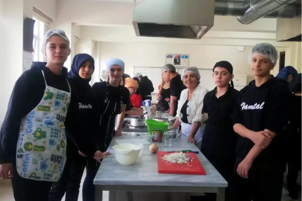 GİRİTYA Başkanı Zehra Nur Biricik ve arkadaşları, Bursa Nilüfer Havva Aslanoba Turizm ve Meslek Lisesi Yiyecek ve İçecek Bölümü öğrencilerine gastronomi bilgilerini aktardılar.