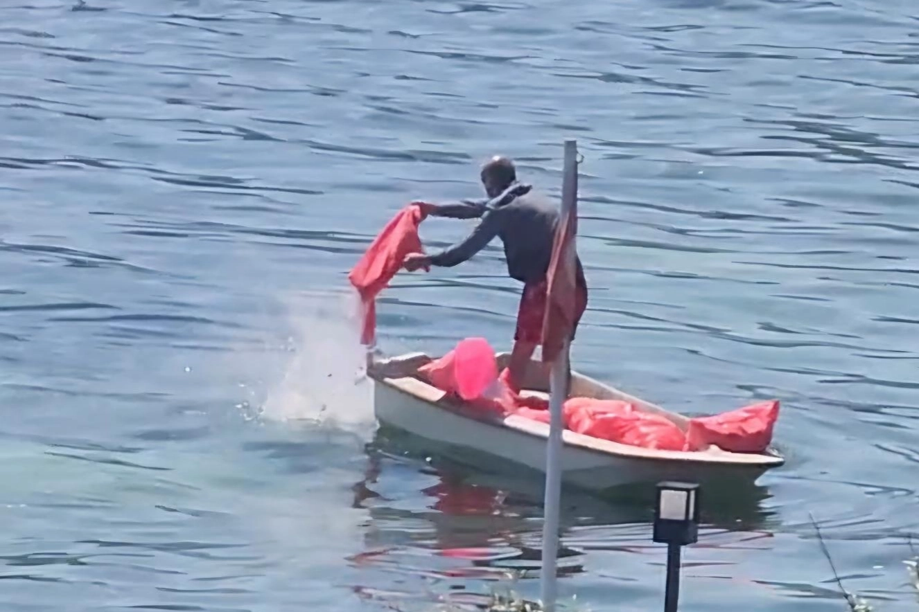 Bir balıkçı teknesinden denize beyaz toz döküldüğünü gösteren görüntülerin yayılması üzerine Sahil Güvenlik Gemlik Kolluk Destek Tim Komutanlığı ekipleri, inceleme başlattı. Yapılan araştırmalar sonucunda videodaki kişinin 50 yaşındaki Y.G. olduğu tespit edildi.