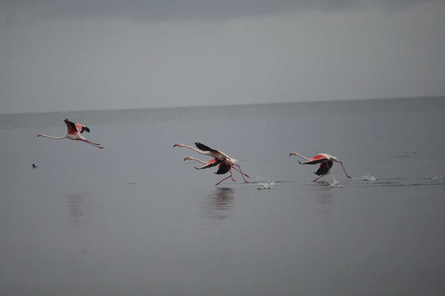 Kışlama noktası olarak koruma altında bulunan sulak alan, gün batımında sunduğu manzaralarla da dikkat çekiyor. Pembe ve beyaz renkleriyle sahilde konaklayan flamingolar, bölgeye eşsiz bir güzellik kattı. Ziyaretçiler, cep telefonlarıyla bu muhteşem anları ölümsüzleştirdi.