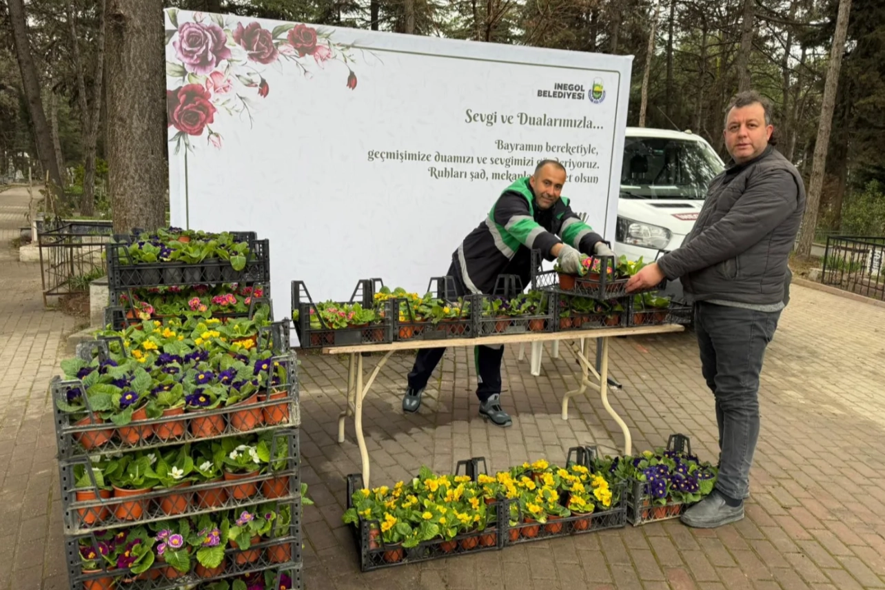 İnegöl Belediyesi Park Bahçeler Müdürlüğü ile Defin Hizmetleri Müdürlüğü’nün ortaklaşa yürüttüğü çalışma kapsamında; İstanbullu Hasan, Kavaklaraltı, Hastane, Orhaniye, Mahmudiye 1 ve 2 ile Hamzabeyli Sadık Ağa Kent Mezarlığı olmak üzere toplam 7 noktada 9 bin adet çiçek dağıtımı gerçekleştirildi.