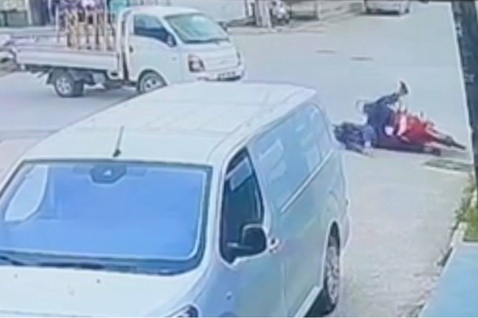 Kaza anı, çevrede bulunan bir iş yerinin güvenlik kamerası tarafından saniye saniye kaydedildi.