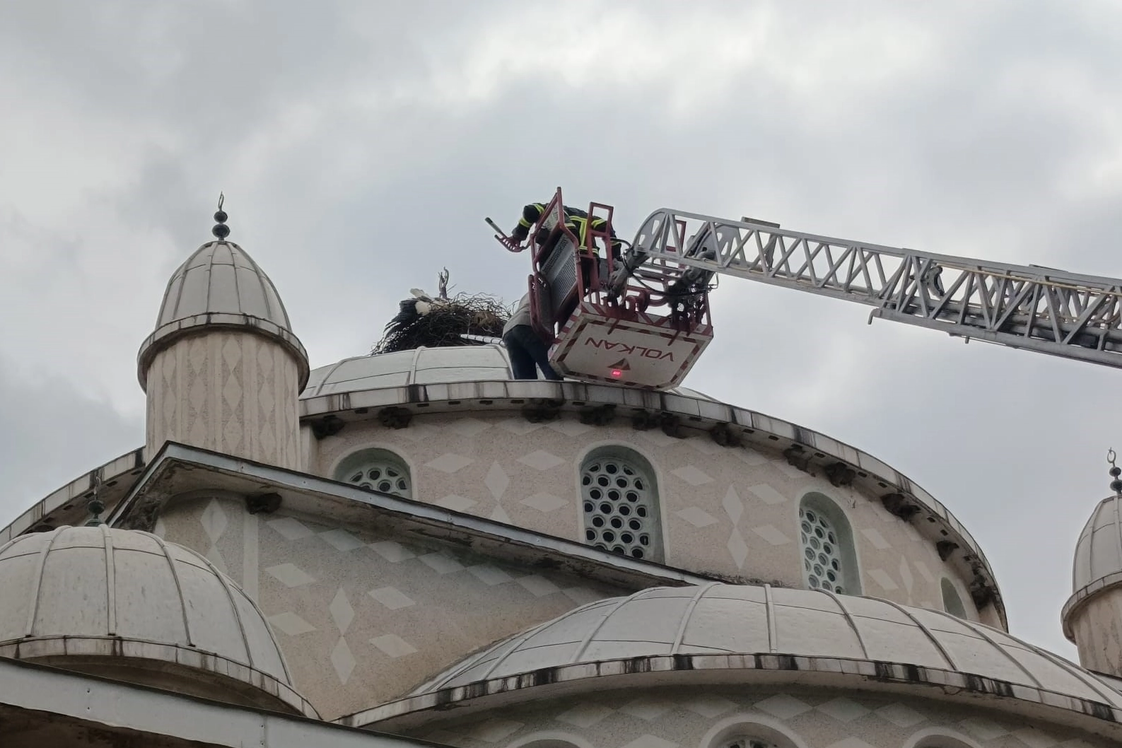 Bursa’nın İznik ilçesinde duygulandıran bir kurtarma operasyonu yaşandı. Orhaniye Mahallesi'nde bulunan caminin kubbesine yuva yapan leylek, yiyecek aramak için yuvadan ayrıldıktan sonra geri dönerken ayağını sıkıştırınca mahsur kaldı. Köy sakinlerinin çaresiz bakışları arasında çırpınan leyleği fark eden mahalle muhtarı Mehmet Duman, hemen Bursa Büyükşehir Belediyesi itfaiyesine haber verdi.