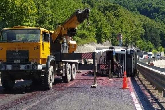 Kamyonun dorsesindeki kirazlar yola saçıldı, sürücüsü yaralandı. Yaralı olay yerine sevk edilen ambulansla İnegöl Devlet Hastanesi'ne kaldırıldı.