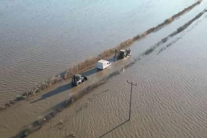 Karacabey ilçesi Harmanlı yolu üzerinde eriyen kar sularının dereyi taşırması sonucu yol kısa sürede sular altında kaldı. Taşkın nedeniyle ulaşım aksarken, su birikintisi içerisinde ilerlemeye çalışan bir vatandaş aracında mahsur kaldı.