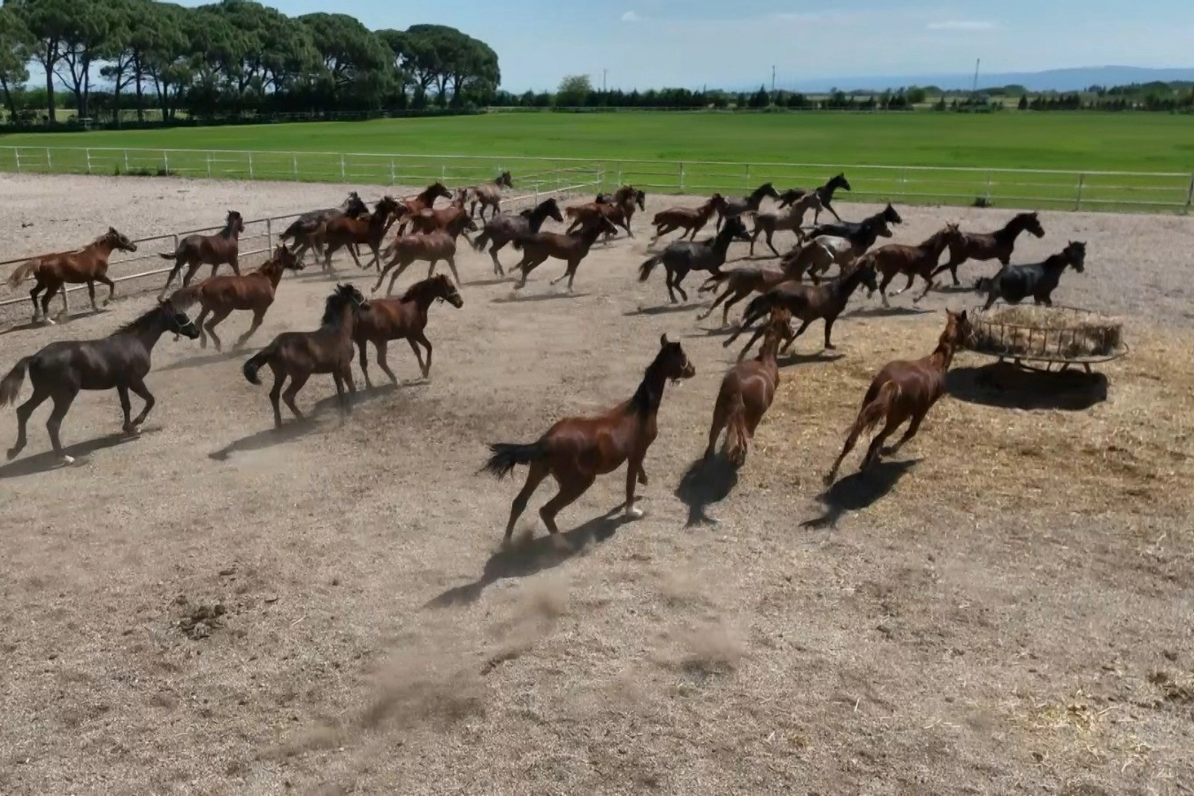 Tarım İşletmeleri Genel Müdürlüğü’ne (TİGEM) bağlı Karacabey Tarım İşletmesi'nde özenle yetiştirilen safkan Arap atları, drone ile havadan görüntülenerek eşsiz bir manzara sundu. Geniş meralarda özgürce koşan tayların dinamik hareketleri ve birbirleriyle etkileşimleri görsel şölen oluşturdu.