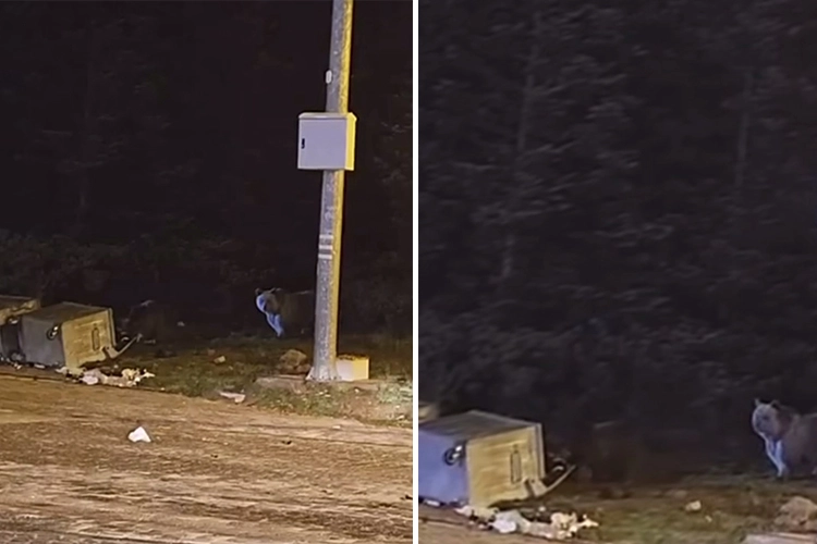 Vatandaşlar, ayıların çöpler arasında dolaştığı anları uzaktan cep telefonlarıyla kaydetti.