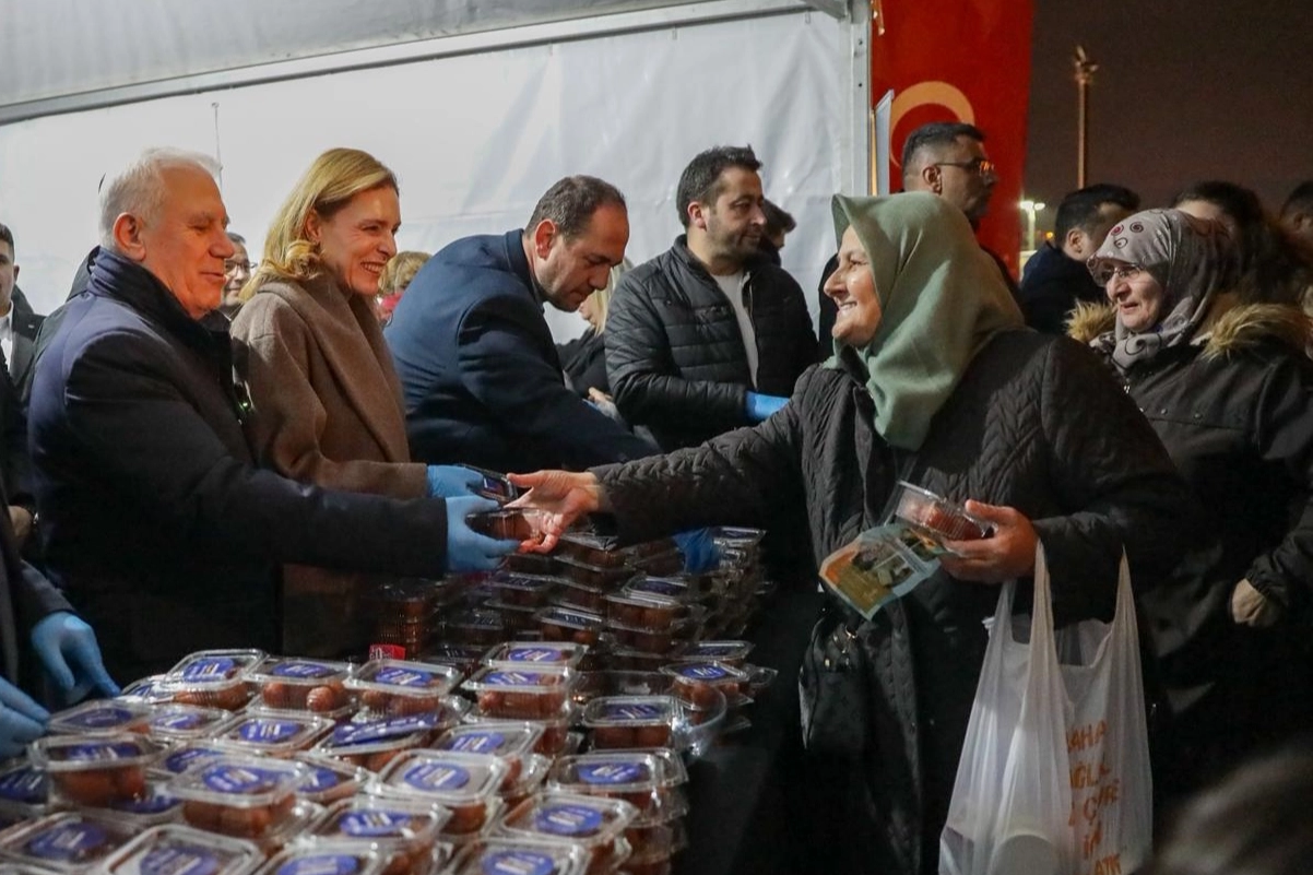 Bursa Büyükşehir Belediyesi, Miraç Kandili kapsamında kent genelindeki 21 camide vatandaşlara tatlı ikramında bulundu.