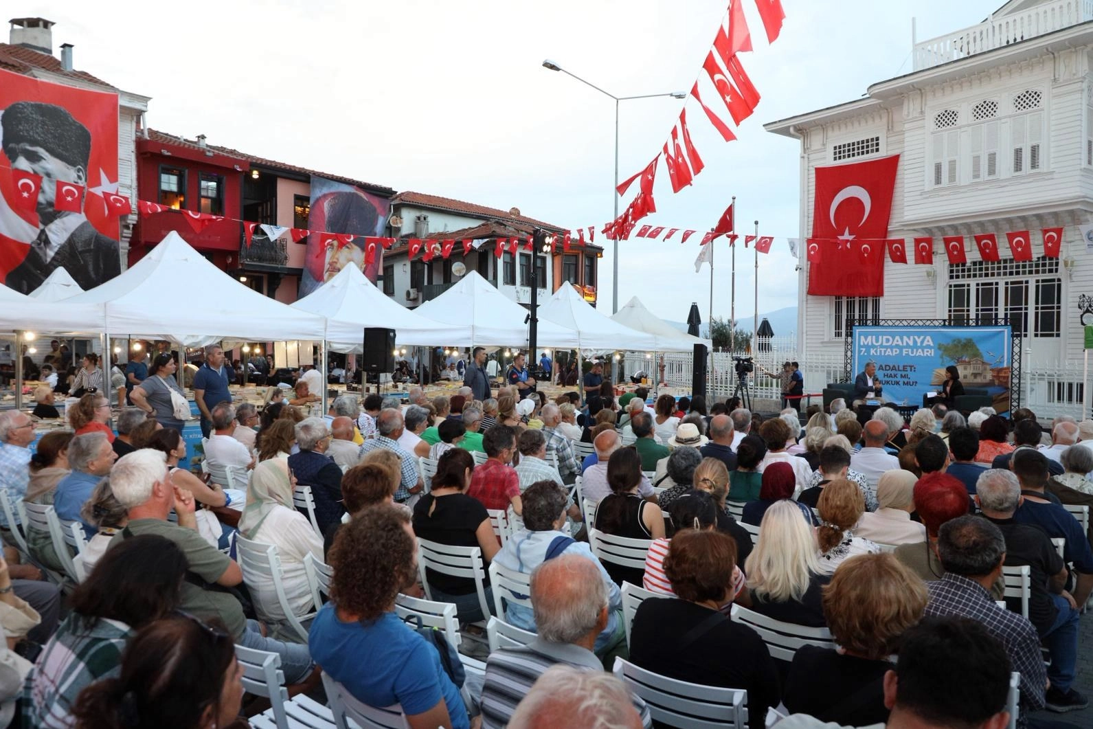 Mudanya Belediyesi’nin kültür ve edebiyat alanındaki vizyon projelerinden biri olan Mudanya 7. Kitap Fuarı, “Adalet: Hak mı Hukuk mu?” temasıyla beş gün boyunca edebiyatseverlere ev sahipliği yaptı. Gazeteci, yazar ve akademisyenlerin katıldığı söyleşi, panel ve imza günleriyle dolu fuar, Mudanya Mütareke Meydanı’nda yoğun bir katılımla gerçekleşti.