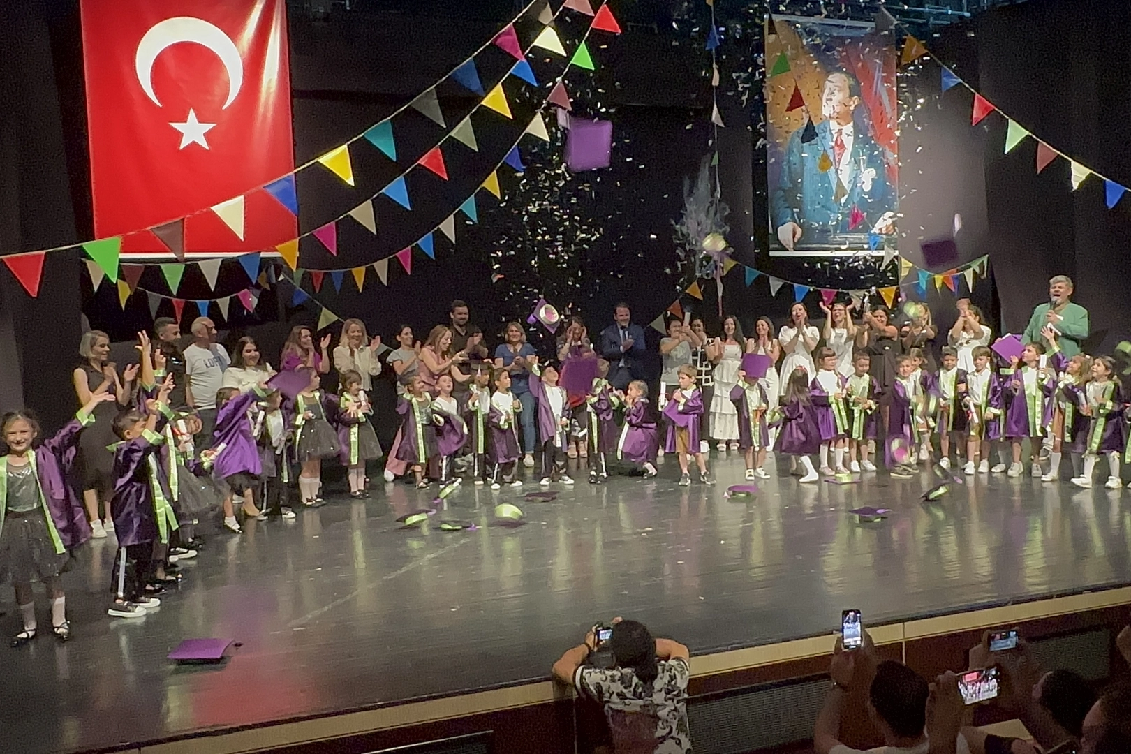Büyük beğeniyle izlenen gösterilerin sonunda, isimleri okunarak sahneye çıkan 6 yaş grubuöğrencileri mezuniyet belgelerini öğretmenlerinin ellerinden aldılar. Keplerini sahnede fırlatarak ilk mezuniyetlerinin coşkusunu yaşayan minikler, kreşlerinden mezun olmanın ve yeni bir eğitim hayatına başlamanın mutluluğunu yaşadılar.