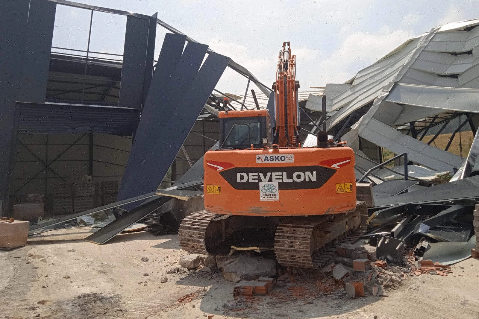 Nilüfer Belediyesi, kaçak yapılaşmaya karşı sürdürdüğü kararlı çalışmalar kapsamında, Kayapa Mahallesi’nde tarım arazisi üzerine ruhsatsız olarak inşa edilen 1100 metrekarelik bir fabrikanın yıkımını gerçekleştirdi.