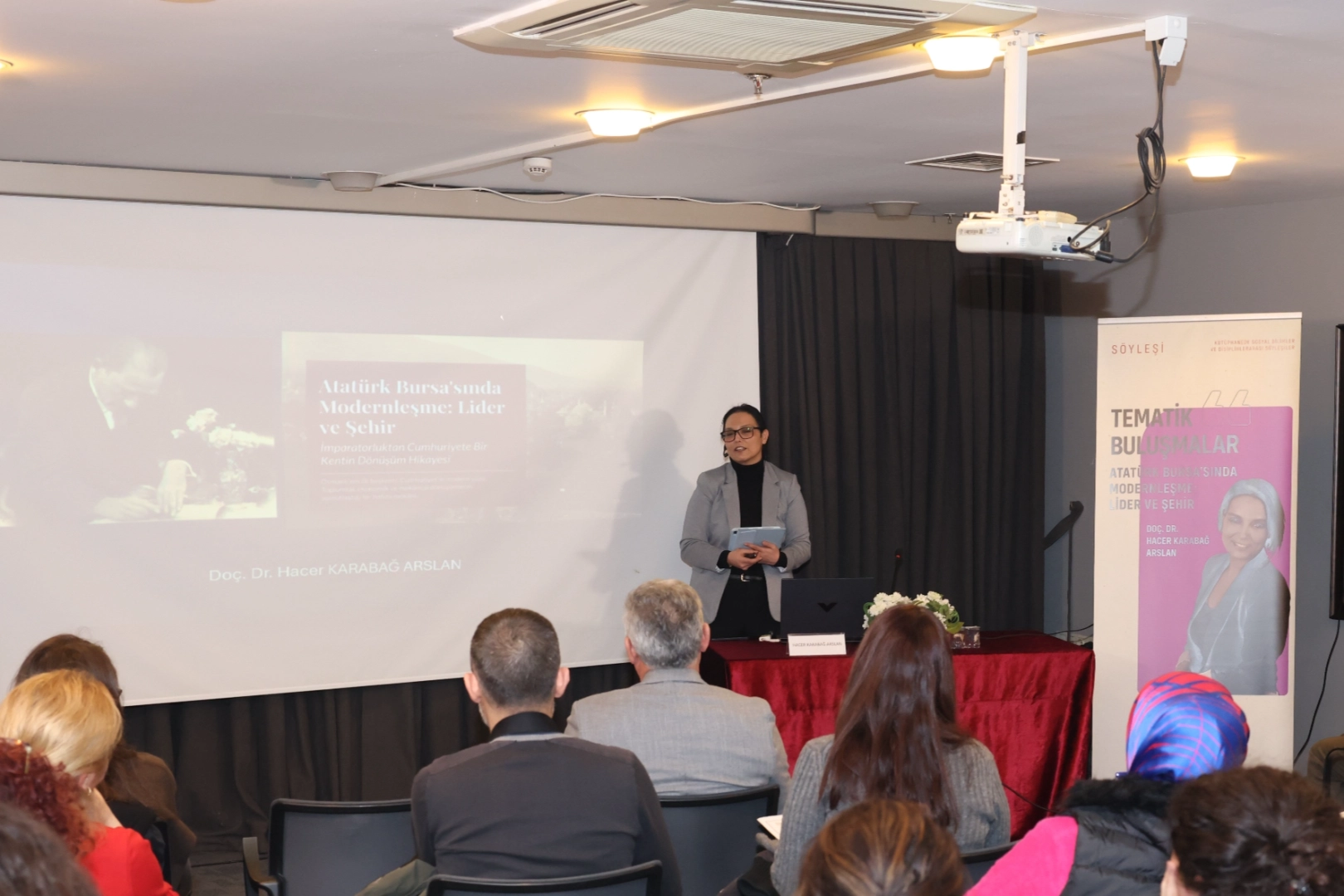 Nazım Hikmet Kültürevi’nde gerçekleşen “Atatürk Bursa’sında Modernleşme: Lider ve Şehir” başlıklı söyleşide Arslan, Atatürk’ün Bursa ziyaretleriyle ilgili detayları ve kentin sosyal, ekonomik ile kültürel değişimini izleyicilerle paylaştı.