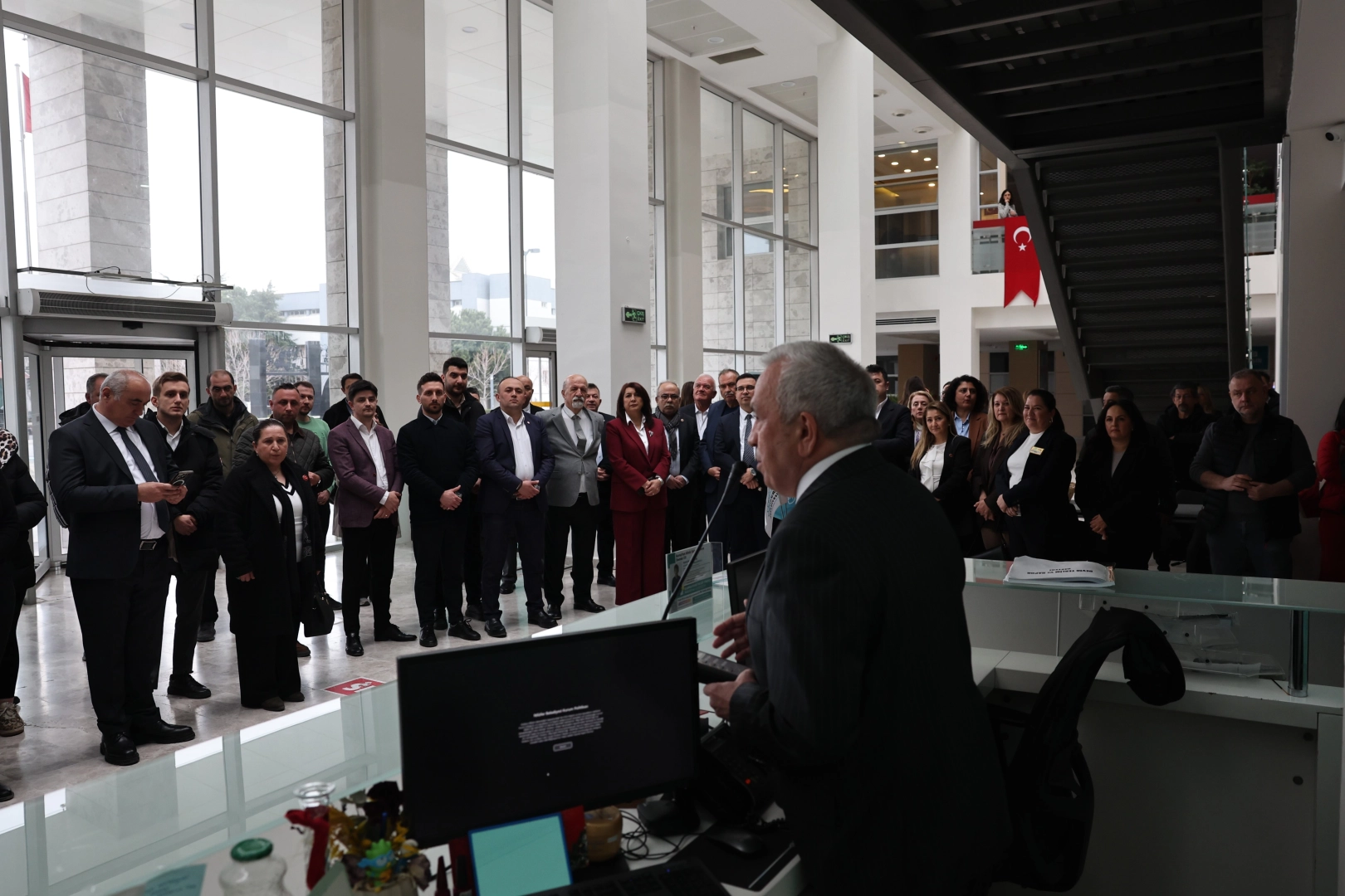 Nilüfer Belediye Başkanı Şadi Özdemir, beraberindeki Başkan Yardımcıları ile birlikte bayramlaşma turuna Alaaddinbey Ek Hizmet Binası’ndaki personelle kucaklaşarak başladı.