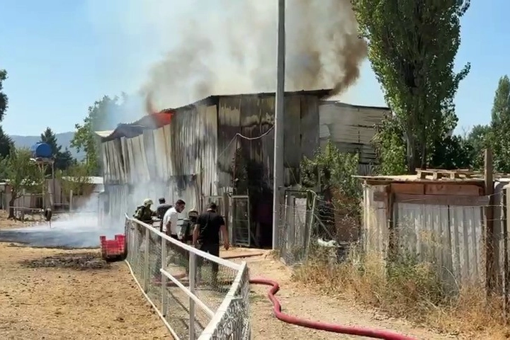 Olay, Alaaddinbey Mahallesi’nde bulunan bir çiftlikte yaşandı. İddiaya göre, hayvan damında meydana gelen elektrik kaçağı kısa sürede yangına yol açtı. Alevler hızla büyüyerek damı tamamen sardı.