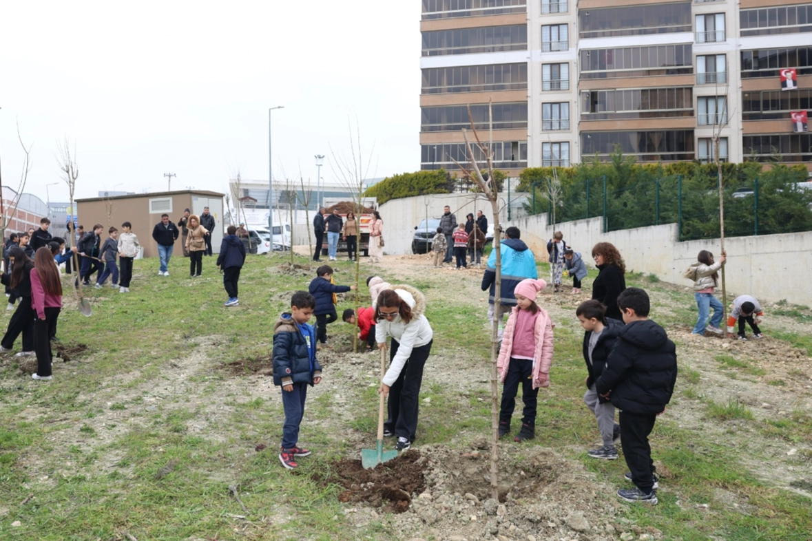 Kırlangıç Sokak’taki yeşil alanı akçaağaç fidanlarıyla donatan öğrenciler, bir yandan ağaç dikmeyi öğrenirken diğer yandan doğayı korumanın önemini kavradı.