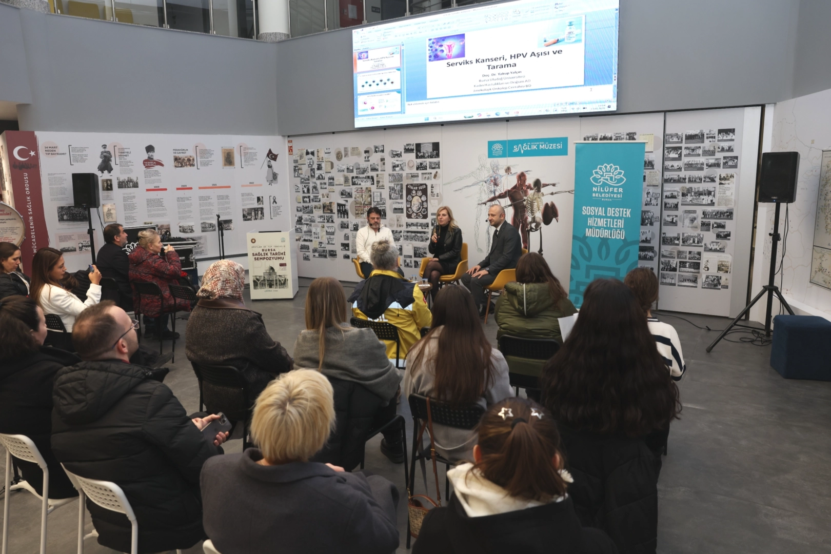 Nilüfer Belediyesi’nin Sağlık Buluşmaları kapsamında düzenlediği söyleşide, kadın sağlığında önlenebilir kanserler arasında öne çıkan rahim ağzı kanseri ele alındı. Nilüfer Belediyesi Dr. Ceyhun İrgil Sağlık Müzesi’nde gerçekleştirilen etkinlikte moderatörlüğü BUÜ Aile Hekimliği Öğretim Üyesi Prof. Dr. Yeşim Afşar Uncu üstlendi. Söyleşiye BUÜ Kadın Hastalıkları ve Jinekolojik Onkoloji Cerrahisi Bilim Dalı öğretim üyeleri Prof. Dr. Kemal Özerkan ve Doç. Dr. Yakup Yalçın konuk olarak katıldı.