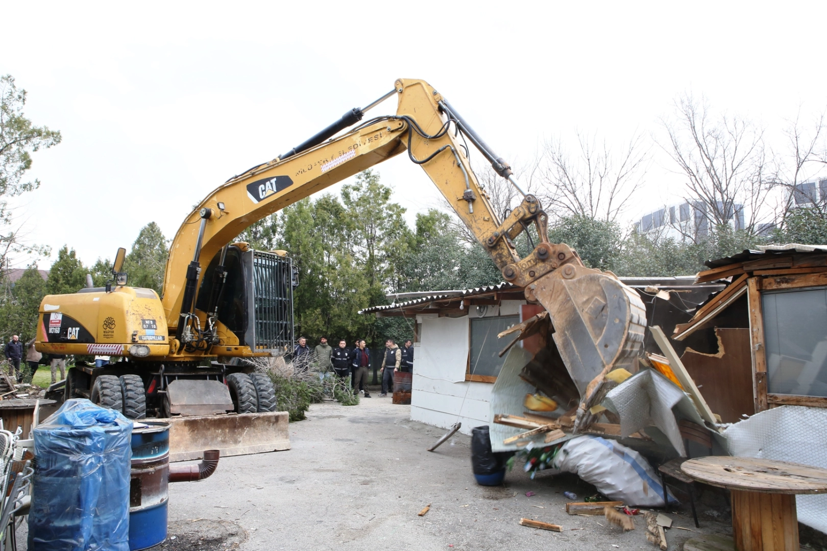 Bu çerçevede Ertuğrul Mahallesi’ndeki park alanına izinsiz yapılan baraka yıkıldı.
