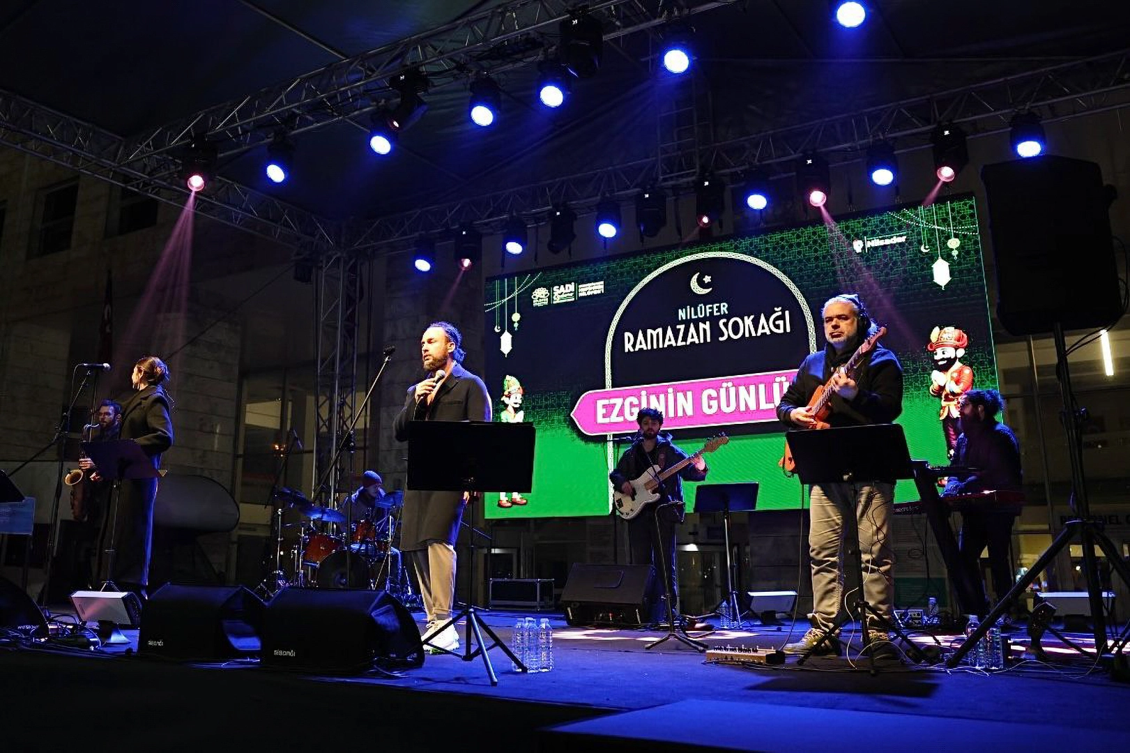Ramazan Sokağı etkinliklerinin kapanışında sahne alan efsanevi grup Ezginin Günlüğü, şarkılarıyla Nilüferlilere nostalji dolu bir akşam yaşattı. "Eksik Bir Şey"den "Düşler Sokağı"na uzanan geniş repertuvarıyla dinleyicileri geçmişe götüren grup; "Ebruli" ve "Hişt" gibi kült eserlerini binlerce kişiyle hep bir ağızdan söyledi.