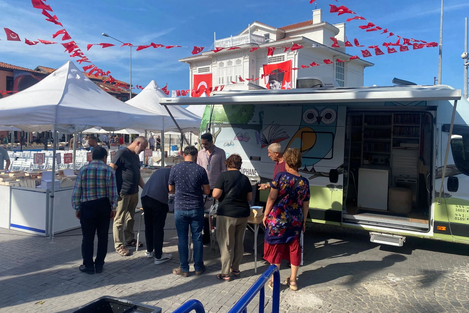 Mudanya Belediyesi tarafından bu yıl “Adalet: Hak mı? Hukuk mu?” temasıyla 3-7 Eylül 2025 tarihleri arasında düzenlenen 7. Mudanya Kitap Fuarı, Nilüfer Belediyesi’nin Gezici Kütüphane katılımıyla renklendi. Fuarın en dikkat çeken katılımcılarından biri olan Gezici Kütüphane, kitaplara erişimi kolaylaştırma misyonuyla fuar ziyaretçilerinden yoğun ilgi gördü.