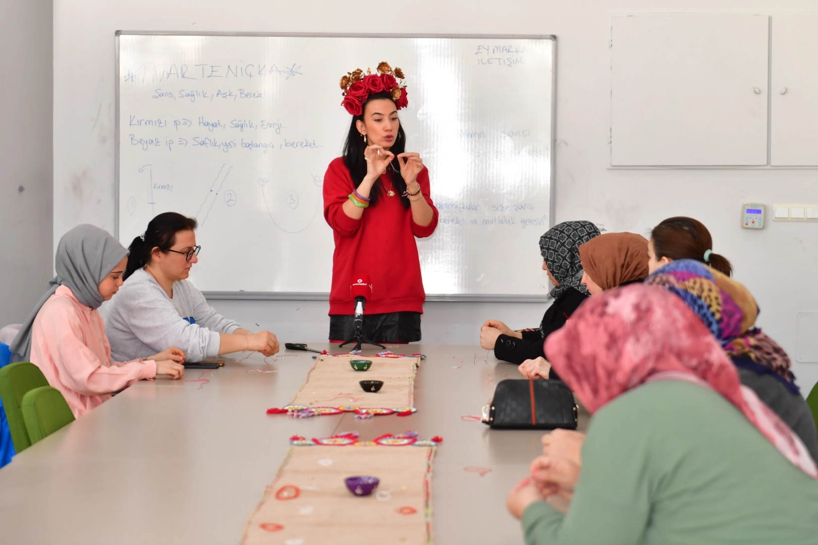 Baharın gelişini simgeleyen ve 1 Mart’ta Balkanlar’da kutlanan Marteniçka geleneğini tanıtmak amacıyla düzenlenen atölye, kadınlara renklerin ve sembollerin anlamını öğretirken, uygulamalı çalışma fırsatı da verdi. Katılımcılar kırmızı ve beyaz iplerden kendi marteniçka bilekliklerini yaparak hem keyifli bir deneyim yaşadı hem de gelenek hakkında bilgi sahibi oldu.