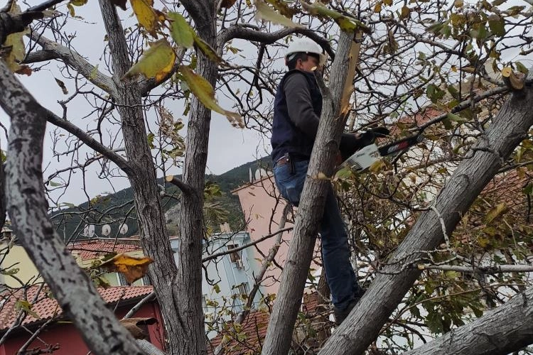 Osmangazi Belediyesi ekipleri, gün boyunca 21 mahallede 130, 12 okulda 52 ağacı devrildikleri yerden kaldırarak günlük hayata uygun hale getirdi.