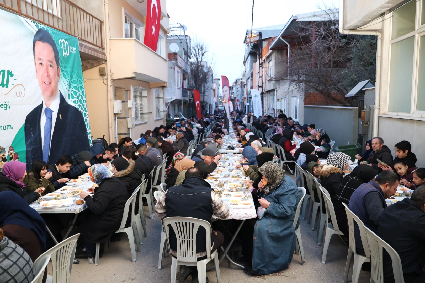 Mahallede ilk kez düzenlenen organizasyon, vatandaşlardan yoğun ilgi gördü. Bin kişilik kurulan iftar sofrasında kısa sürede yer kalmazken, katılımın yüksek olması dikkat çekti.