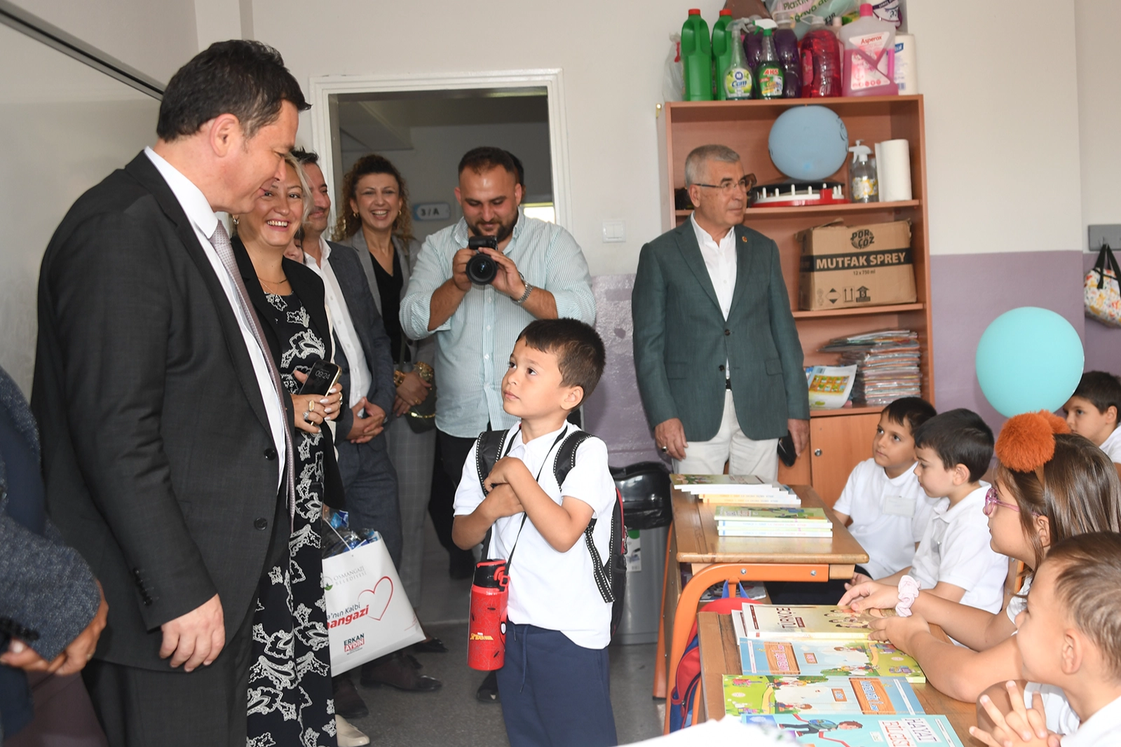 Başkan Aydın, Nilüfer Mukaddes Yazıcılar İlkokulu, Geçit Yunus Emre İlkokulu ve Şehit Murat Atsen İlkokulu’na giderek öğretmen, öğrenci ve idarecilere başarılar diledi. İlk ders heyecanı yaşayan birinci sınıf öğrencilerine kalem kutusu hediye eden Aydın, çocukların mutluluğuna ortak oldu.