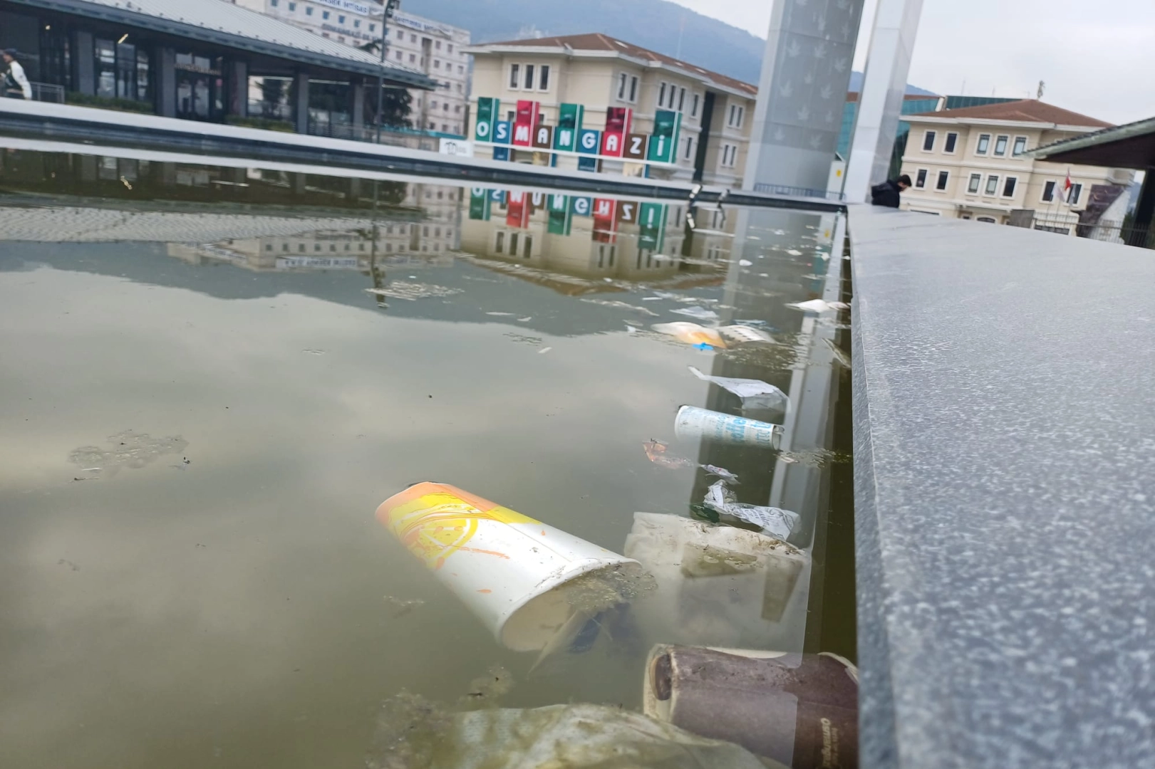Osmangazi ilçesinin merkezinde, belediye hizmet binasının hemen önünde bulunan ve Ramazan etkinliklerine de ev sahipliği yapan meydandaki süs havuzu, bugünlerde çevre kirliliği iddialarıyla gündemde. Gün içerisinde binlerce kişinin geçiş güzergahında bulunan havuzun içindeki atık yoğunluğu, hem görsel kirliliğe hem de hijyen endişesine yol açıyor.