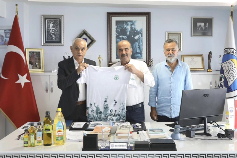 Rahatsızlığı sebebiyle Nazilli Belediyespor maçına gelemeyen Bursaspor Başkanı Recep Günay, Mudanya Belediye Başkanı Hayri Türkyılmaz’ı ziyaret etti. Ziyaret sonrası açıklama yapan Mudanya Belediye Başkanı Hayri Türkyılmaz, "Bursaspor Kulübü Başkanı Recep Günay ve kongre üyesi Ali Metin'i belediyemizde ağırladık. Bursaspor'un 60. yıl dönümüne özel olarak hazırlanan hatıra formasını hediye ettiler. Nazik ziyaretleri ve hediyeleri için teşekkür ederim. Bursasporumuzu hak ettiği yerde yeniden görmek en büyük arzumuz" ifadelerini kullandı. (İHA)