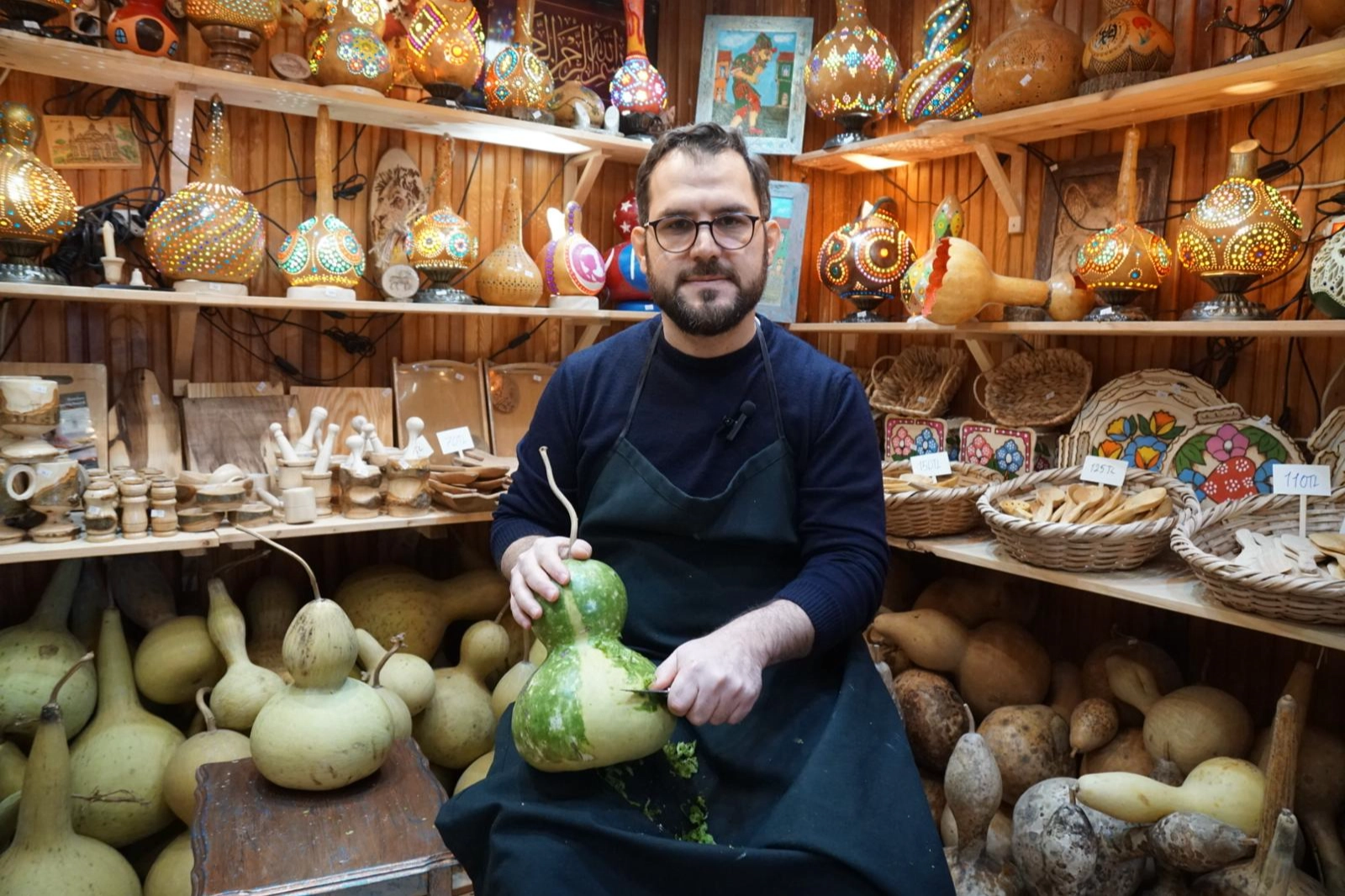 Bursa’da, Tahtakale Çarşısı’nın tarihi atmosferinde su kabağından çeşitli ev dekorasyon ürünleri üreten tek kabak sanat atölyesi, sanatla uğraşmak isteyenlere ilham kaynağı oluyor. Ziraat Yüksek Mühendisi Ahmet Salih Peker tarafından beş yıl önce devralınan bu atölye, geleneksel bir sanatı yaşatmanın yanı sıra, vaktini kaliteli bir şekilde değerlendirmek isteyenlere terapi niteliğinde bir uğraş sunuyor.