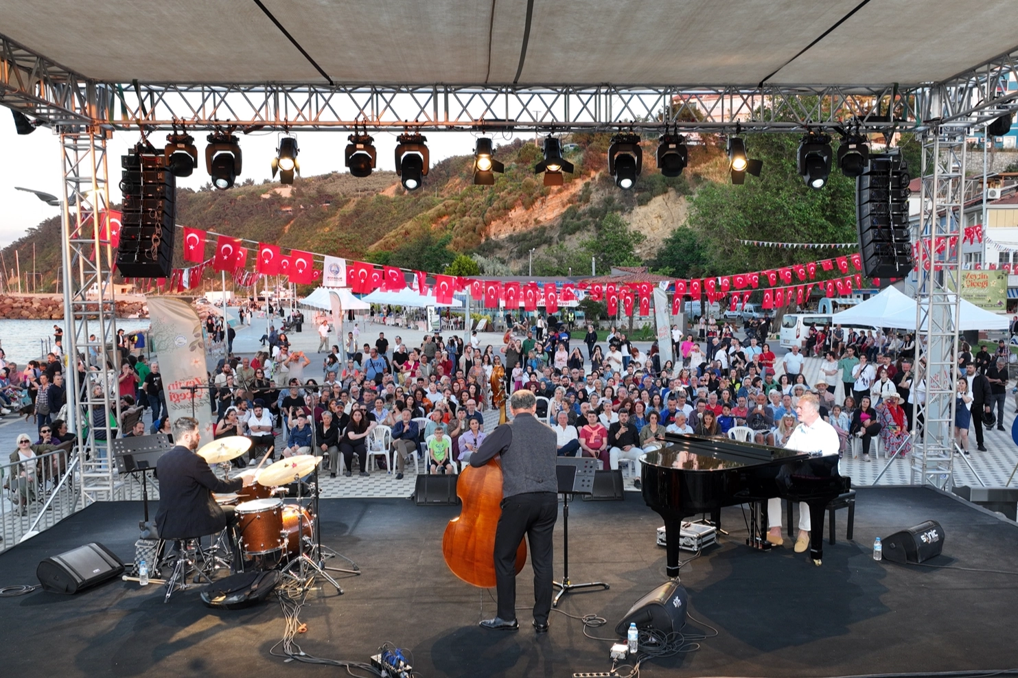 KEREM GÖRSEV’LE TİRİLYE’DE CAZ RÜZGÂRIFestivalin kapanışı, caz müziğin usta ismi Kerem Görsev’in sahne aldığı konserle yapıldı. Tirilye sahilinde gerçekleşen “Tirilye’de Caz” konseri, zeytin çiçeği kokuları arasında müzikseverlere unutulmaz anlar yaşattı.