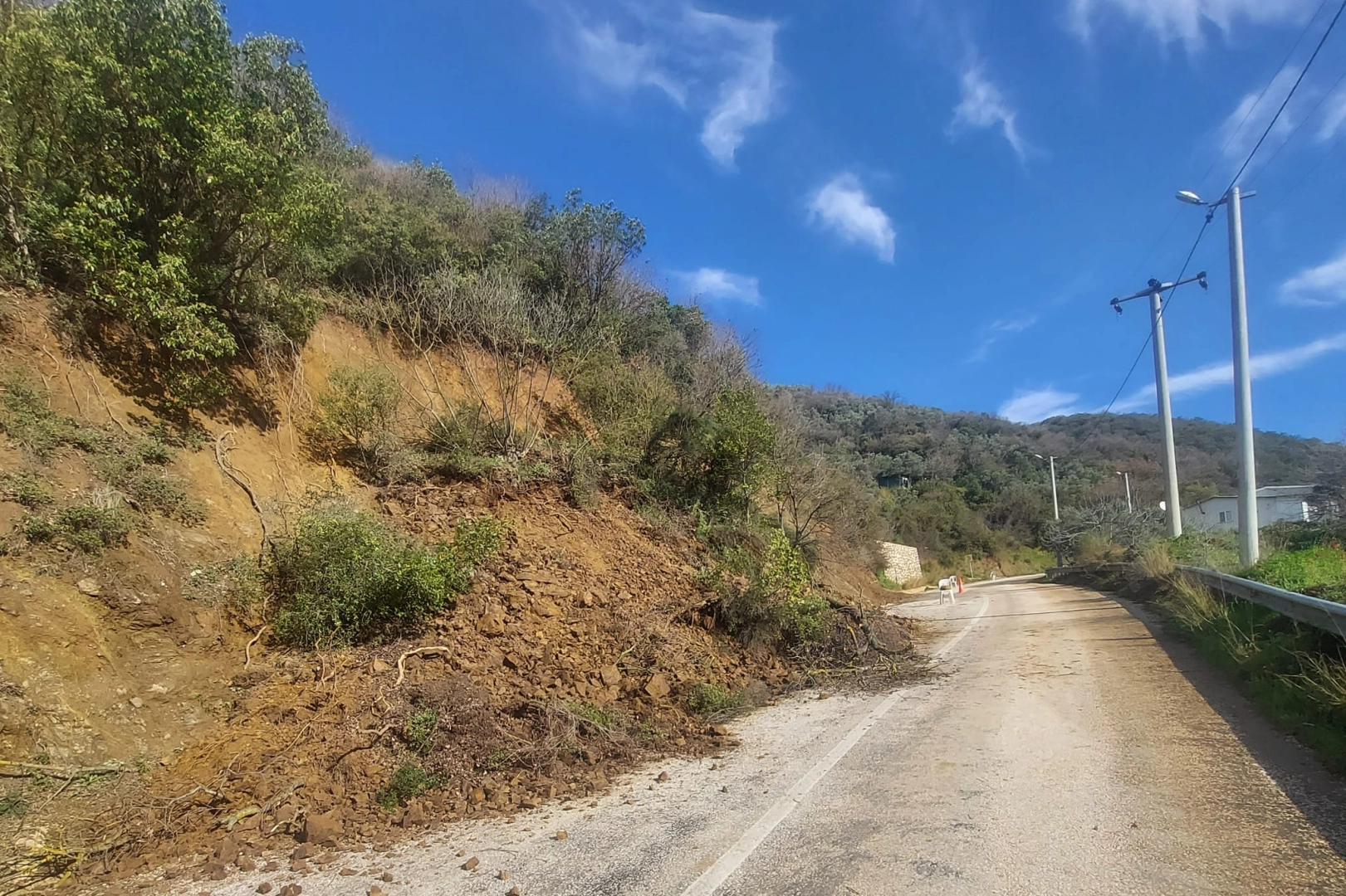 Yağış nedeniyle meydana gelen kayma sonucu kapanan yol, devrilen ağaçlar ve taş parçalarının temizlenmesiyle tekrar ulaşıma açıldı.