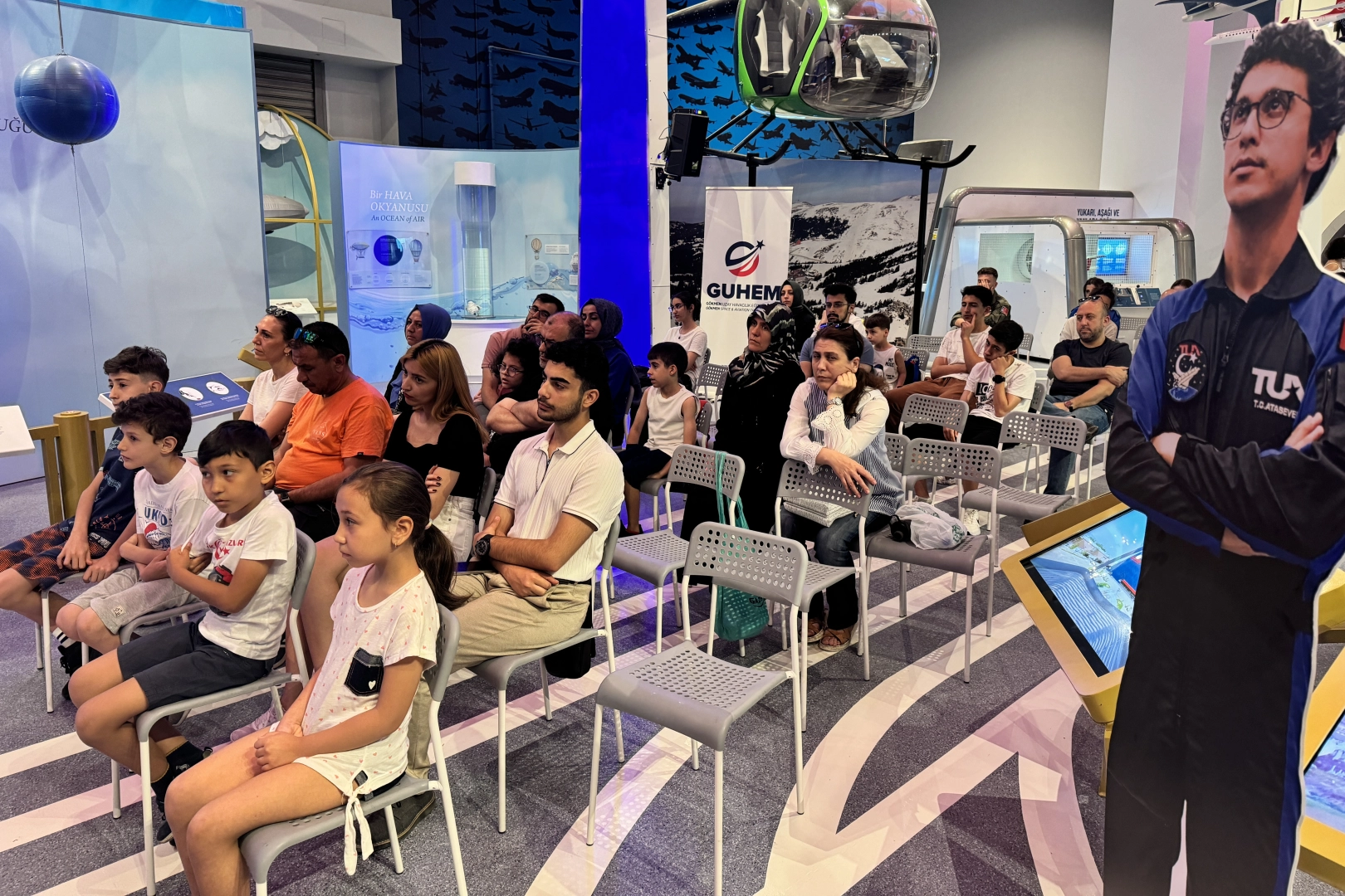 GUHEM'e gelen vatandaşlar, Atasever'in Yörünge Altı Araştırma Misyonu kapsamında yapılacak yayını canlı takip etti.