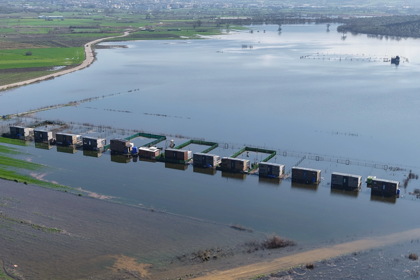 Bursa’da son bir aydır aralıksız süren yağışlar, Uluabat Gölü’nün taşmasına neden oldu. Nilüfer ilçesine bağlı Akçalar Mahallesi ve Karacabey Ovası hattında göl suları yerleşim alanlarına kadar ilerledi. Bölgede yasak olmasına rağmen göl havzasına inşa edilen çok sayıda bungalov ve hobi evi, yükselen suyun ortasında kalarak ulaşılmaz hale geldi.