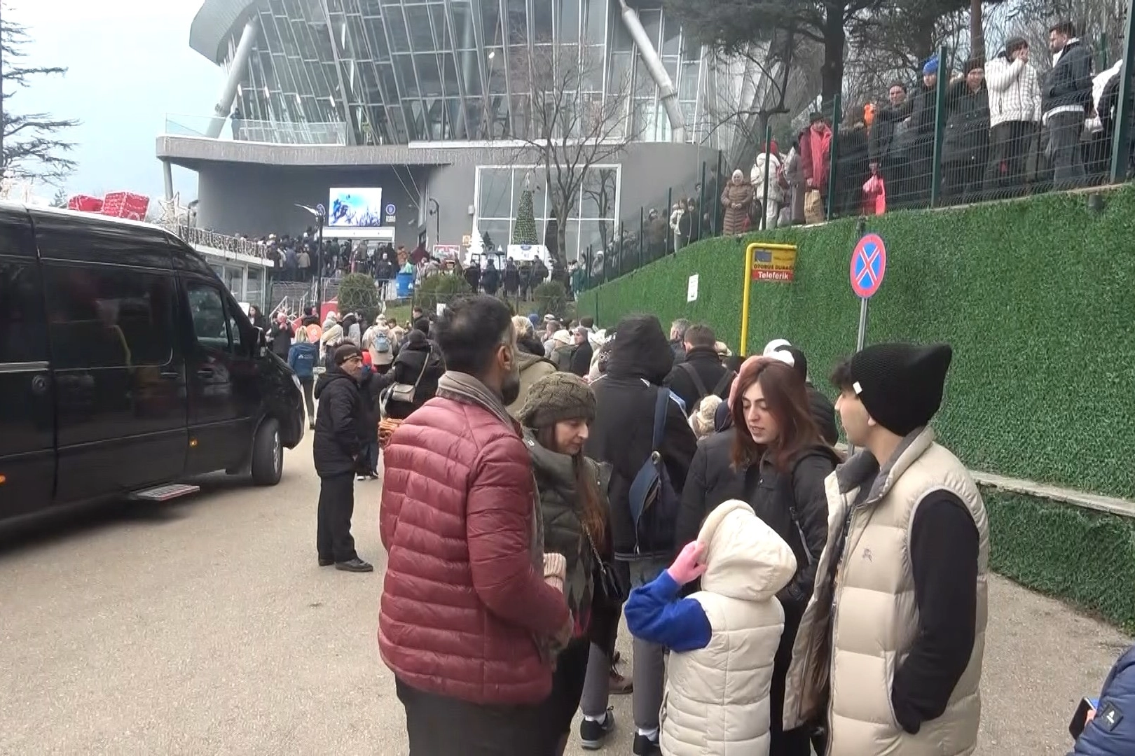 Uludağ’a otomobili ile çıkmak istemeyen vatandaşlar, teleferiğe akın etti. Teleferikte metrelerce kuyruk oluştu. O anlar kameralara yansıdı.