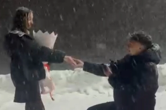 AŞK SOĞUĞA MEYDAN OKUDUBiri 2025'in son, diğeri 2026'nın ilk müjdesi olarak kayıtlara geçen bu anlar, Uludağ'daki yılbaşı kutlamalarına damga vurdu. Meşaleler, alkışlar ve kar taneleri eşliğinde yaşanan bu anlar, sosyal medyada da kısa sürede büyük beğeni topladı. 2026 yılının ilk saatlerinde Uludağ, eğlencenin yanı sıra aşkın da adresi oldu.