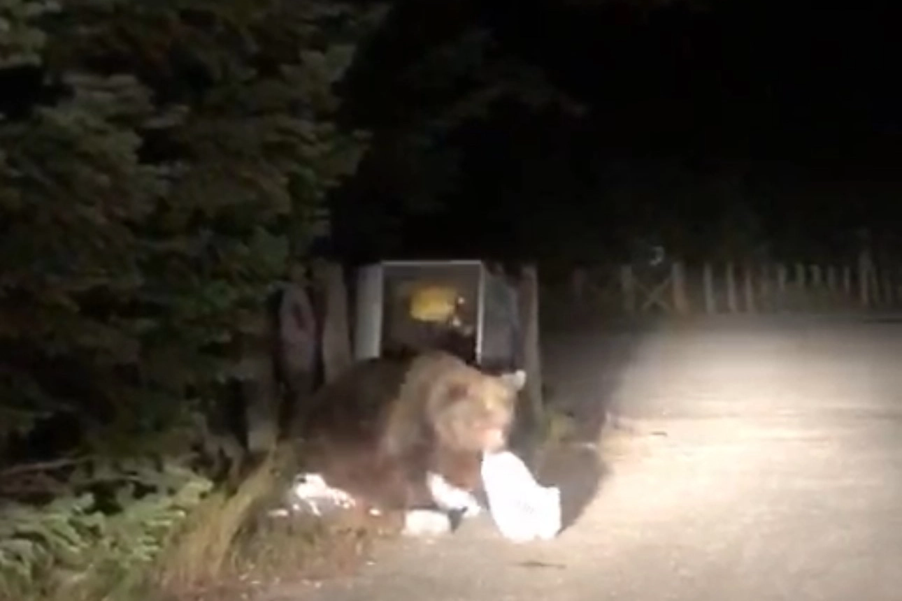 Uludağ'da aç kalan ayı, çöp konteynerlerinde yemek ararken görüntülendi.