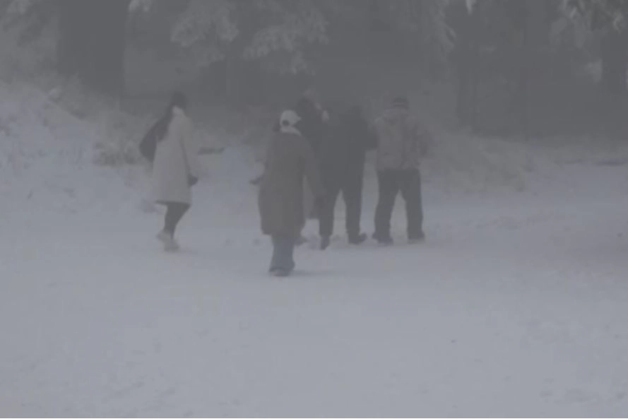 Bölgeye kendi araçlarıyla veya tur kafileleriyle gelen ziyaretçiler, biriken kar üzerinde vakit geçirirken telesiyejle zirveye çıkarak dağ manzarasının tadını çıkardı.