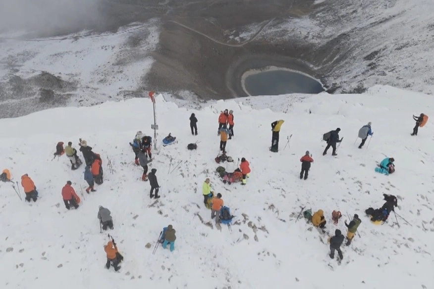 Zirve yürüyüşünün ardından dağcılar, dron ile çekilen görüntülerde Türk Bayrağı'nın dalgalandığı anları ölümsüzleştirdi. Karla kaplı zirvedeki bu tarihi an, izleyenlerin nefesini kesti. 30 dağcı, Türk Bayrağı’nın önünde büyük bir zaferin simgesi olarak hatıra fotoğrafı çekerken, zorlu hava koşullarının üstesinden gelerek zirveye ulaşmanın keyfini yaşadılar.