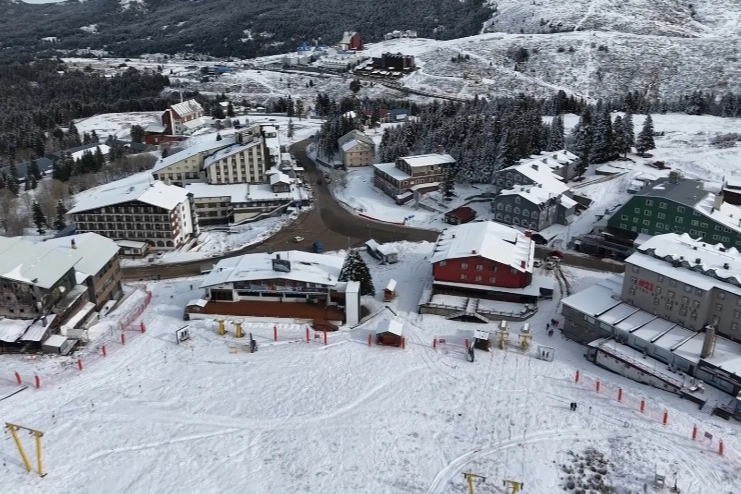 Mevcut kar örtüsünün cazibesini koruduğu tesislerde, karla kaplı oteller bölgesinin havadan çekilen drone görüntüleri ise bölgenin nefes kesici güzelliğini gözler önüne seriyor.