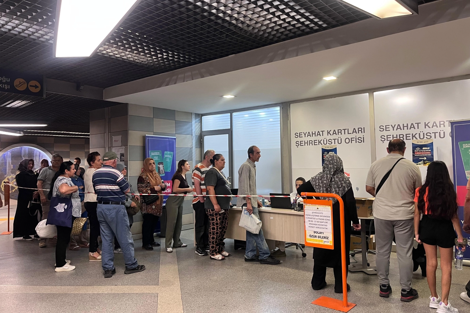 Bursa’da yeni BursaKart sistemine geçiş sürüyor. Kartlarını yenilemek isteyen vatandaşlar seyahat kartı ofisleri önünde uzun kuyruklar oluştururken, sıcak havada saatlerce beklemek zorunda kalanlar durumdan şikâyetçi. 1 Ekim’e kadar uzatılan süre de yoğunluğu azaltmaya yetmedi.