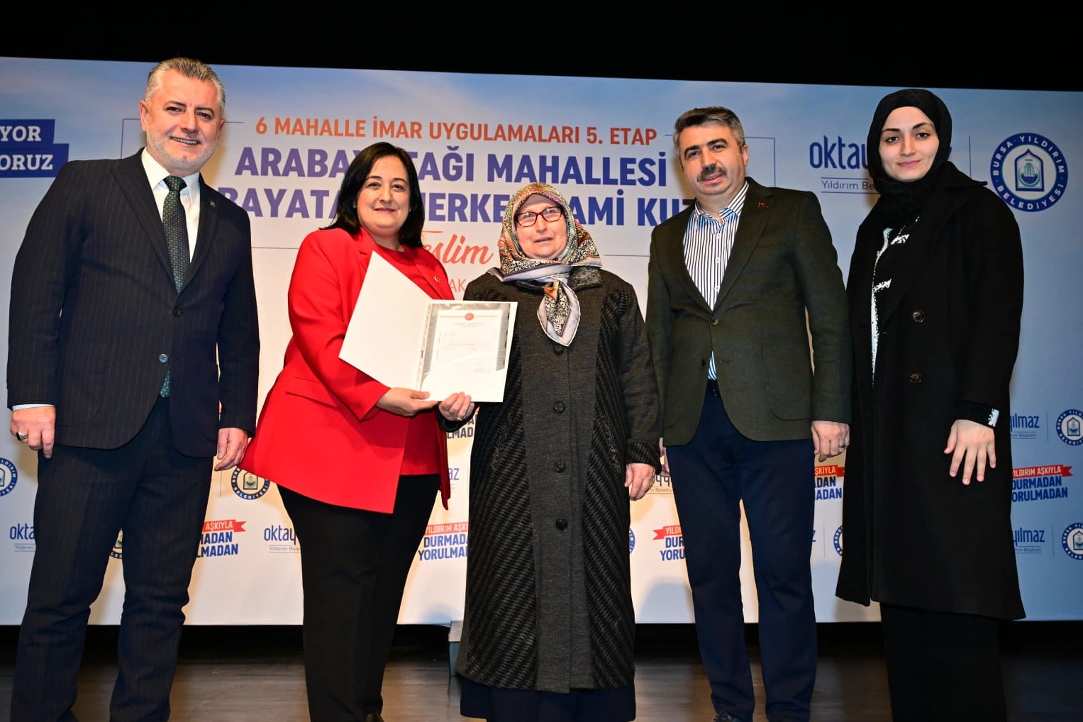 Yıldırım Belediyesi, 6 Mahalle İmar Uygulamaları 5. Etap çalışmalarını tamamlayarak, Arabayatağı, Çınarönü, Ulus, Yavuzselim, Mevlana ve Hacivat mahallelerinde 300 hak sahibine tapularını teslim etti.