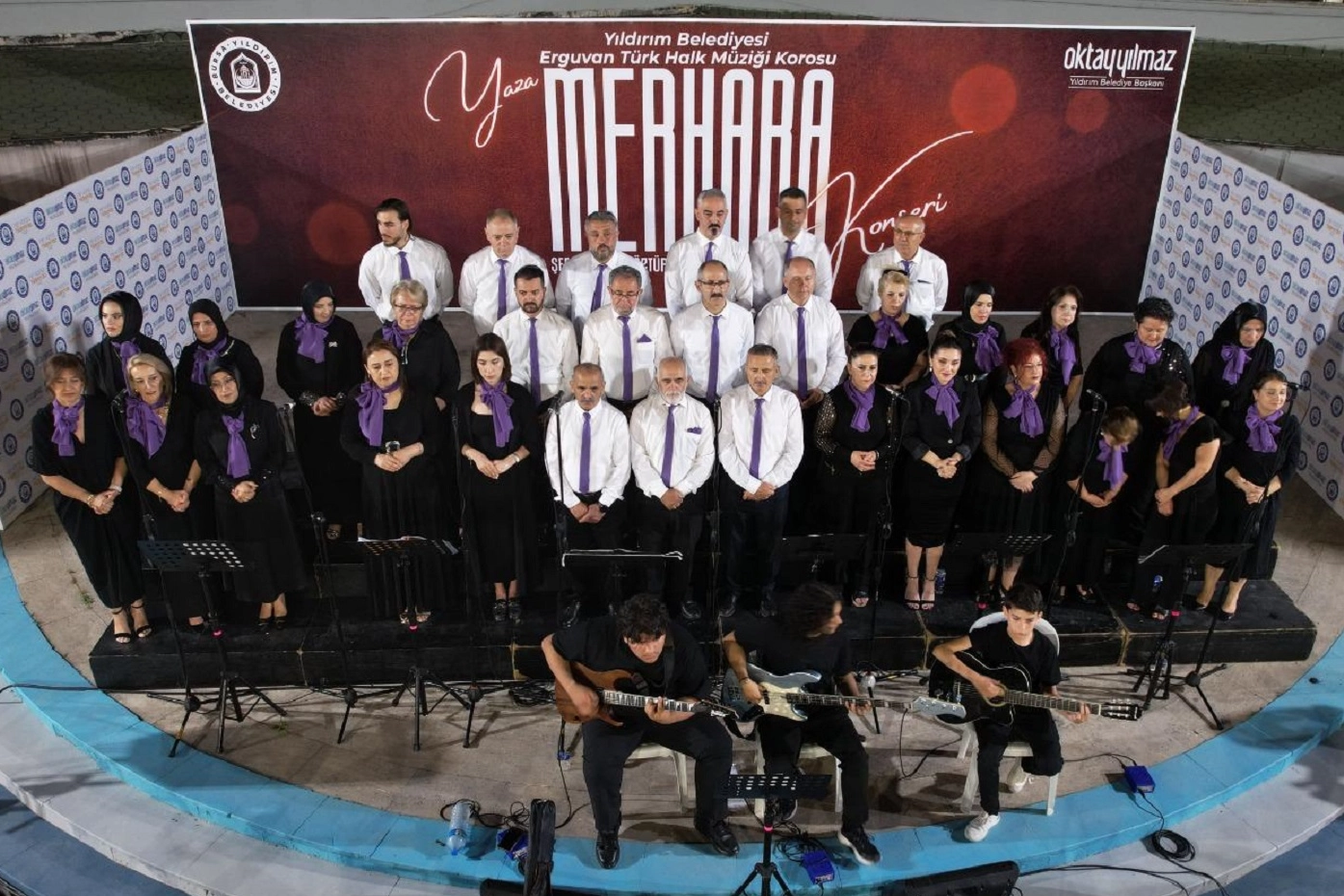 Erguvan Halk Dansları Topluluğu da geceye damgasını vurdu. Karadeniz’in enerjik horonlarından Ege’nin ağır zeybeklerine, Bursa yöresi oyunlarına kadar uzanan dans performansları, türkülere görsel bir şölen kattı. Müzik ve dansın uyumu izleyenlere keyifli anlar yaşattı.