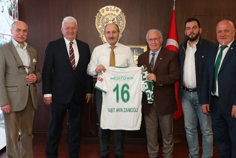 Bursaspor Kulübü’nden yapılan açıklama şu şekilde: “Başkanımız Sinan Bür, Futbol Şube Sorumlumuz İsmail Ertekin, Amatör Branşlar ve Futbol Okullarından Sorumlu Yönetim Kurulu üyemiz Beyhan Çalışkan, Yüzüncü Yıl Atatürk Stadyumundan Sorumlu Yönetim Kurulu üyemiz Alper Özyüksel, Sosyal Sorumluluklar, Taraftar ve Projelerden Sorumlu Yönetim Kurulu üyemiz M. Orhan Efe Bursa İl Emniyet Müdürümüz Dr.Sabit Akın Zaimoğlu'nu ziyaret etti. Ziyaretin ardından Başkanımız Sinan Bür, Sabit Akın Zaimoğlu'na isminin yazılı olduğu formamızı hediye etti.”