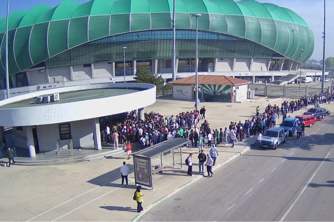 Bursaspor taraftarları sabahın ilk saatlerinden itibaren bilet satış gişelerinde uzun kuyruklar oluşturdu.