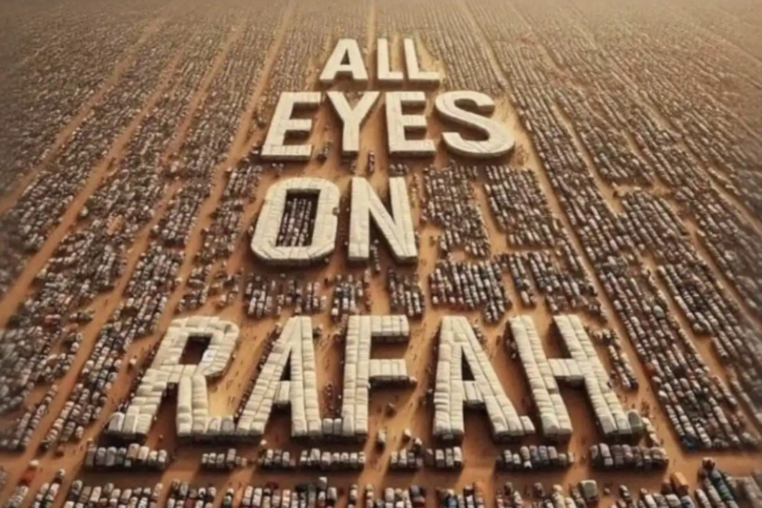 NE ANLAMA GELİYOR?"Tüm gözler Refah'ta" anlamına gelen "All Eyes on Rafah" sloganı, Gazze'nin güneyinde yer alan Refah şehrindeki duruma dikkat çeken bir yapay zeka tasarımı. Slogan, İsrail'in saldırıları nedeni ile hayatını kaybeden, yaralanan ve taşınmak zorunda olan Filistinlilere destek amacıyla kullanılıyor.