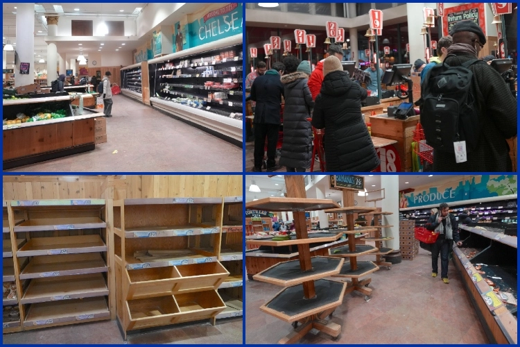 Özellikle New York ve New Jersey çevresindeki market ve süpermarketlerde dikkat çekici bir yoğunluk yaşandı. Su, ekmek ve makarna gibi temel gıda ürünlerinin bulunduğu raflar kısa sürede boşaldı.