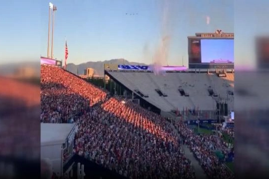 LaVell Edwards Stadyumu’nda havai fişeklerin fırlatıldığı sırada bir sorun yaşandı ve bazı fişekler tribünlerdeki seyircilerin üzerine düştü.