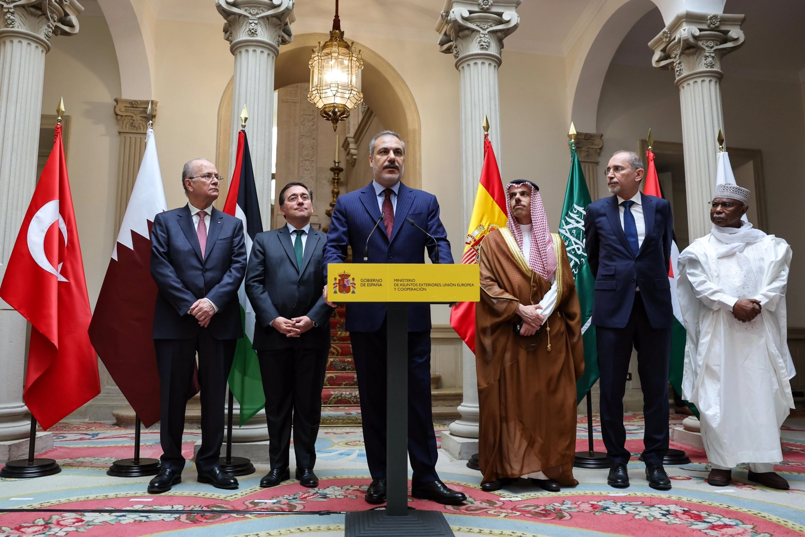 Dışişleri Bakanı Hakan Fidan, İslam İşbirliği Teşkilatı (İİT) ve Arap Birliği Gazze Temas Grubu üyeleri ile birlikte İspanya’nın Filistin devletini tanıma kararı vesilesiyle ilettiği davete icabetle Madrid’e gitti.