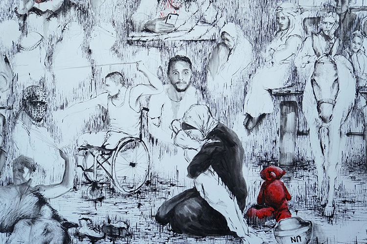 Dev tabloyu inceleyerek görüşlerini dile getiren Nişantaşı Üniversitesi Öğretim Görevlisi ve sinema yazarı Döndü Toker, projenin Üsküdar'da yapılmasının önemine dikkati çekerek, "Sanatçı arkadaşımız her gün azar azar yani bir yanda zulüm devam ederken, kan akarken, o da ufak ufak mürekkebini damlatmış." dedi.